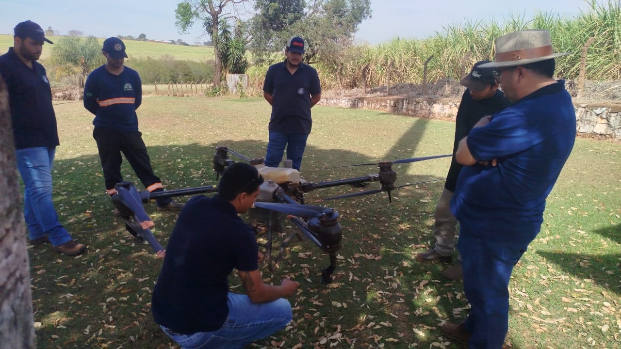 Durante o curso, os participantes tiveram contato direto com o drone DJI Agras T40, aprendendo desde sua estrutura e configuração inicial até os modos de voo e operação via controle remoto. Também foram abordadas boas práticas de uso, limpeza e manutenção preventiva, com foco na segurança, desempenho e longevidade da aeronave. Esse curso foi realizado com a finalidade de formação de operadores de drones agrícolas.