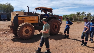 O treinamento também contemplou temas práticos como sistema hidráulico de três pontos, regulagem e acoplamento de implementos, regulagem de bitola, lastragem sólida e líquida, classificação de pneus agrícolas e fatores de desempenho operacional, como índice de patinagem e avanço do eixo dianteiro 📊🚜.