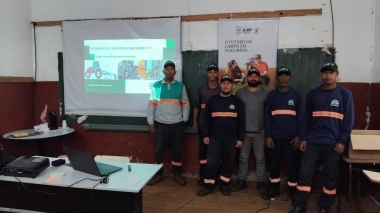 Durante a capacitação, foram abordados aspectos legais e normas de segurança ⚠️, além de conteúdos técnicos essenciais para o uso correto e eficiente dos tratores agrícolas. Os participantes aprofundaram conhecimentos sobre a classificação dos tratores, aproveitamento da potência, componentes do trator agrícola, simbologia, indicadores do painel e comandos de operação 🔧🛠️.